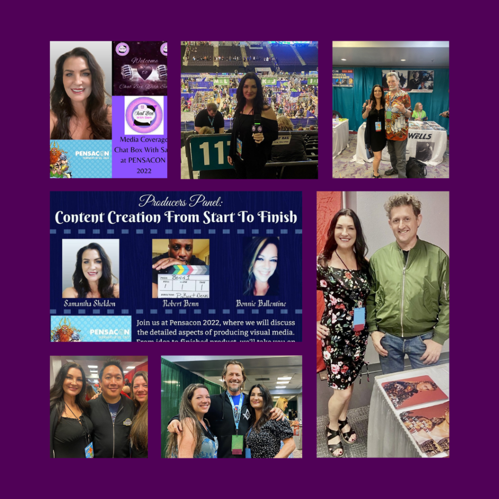 Samantha Sheldon did live coverage at Pensacon 2021 and 2022 in Pensacola, Florida interviewing cosplayers documenting their experience at Pensacon. She enjoyed meeting panelists and celebrity guests and immersing herself in the Pensacon experience. Sam also did on camera media coverage at the 2021 Pensacon for Blackwater Blues Indiegogo Presentation starring Corin Nemec and Jason London. Bonnie Ballentine served as co-producer and co-editor on both projects. Special thanks to Robert Benn for being the guide at Pensacon.